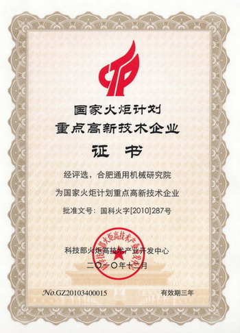 据科技部火炬高技术产业开发中心发布的《关于发布2010年国家火炬计划重点高新技术企业评选结果的通知》(国科火字〔2010〕287号)中获悉,2010年国家火炬计划重点高新技术企业评选工作已经结束,我院喜获2010年国家火炬计划重点高新技术企业,此次安徽省共有22家单位入选。