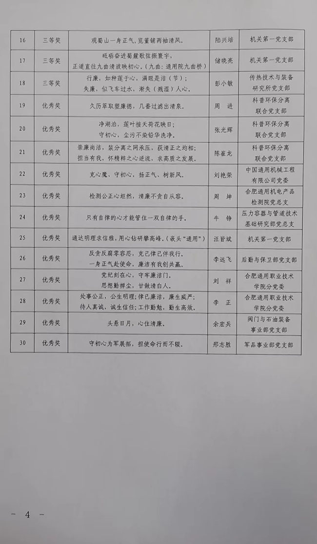 为深入贯彻落实党的二十大和二十届中央纪委二次全会精神,落实中共中央办公厅《关于加强新时代廉洁文化建设的意见》,引导全院干部职工进一步增强廉洁自律意识,营造干事创业的良好氛围,2023年5月院纪委组织开展了以“崇廉尚洁·担当有我”为主题的廉洁格言警句共创活动。活动开展以来,各基层党组织动员广大干部职工积极创作投稿,共报送了99篇意蕴深刻、特色鲜明的作品。经过多轮评选,共评出一等奖作品3篇,二等奖作品6篇,三等奖作品9篇,优秀奖作品12篇,优秀组织奖1名。