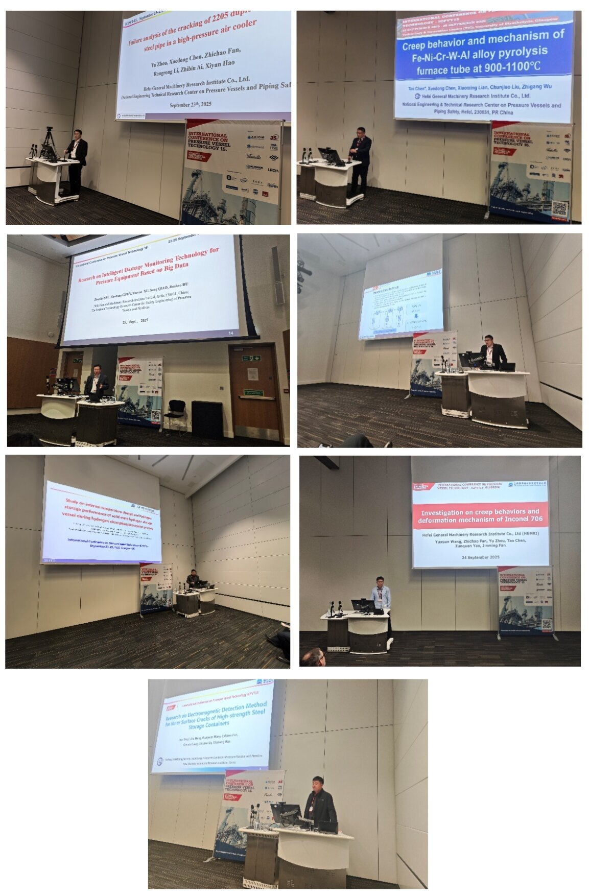 大会为期3天,邀请陈学东院士作了题为“中国氢能储运装备技术进展”的大会报告,会上我院还宣读了8篇学术论文,围绕双相不锈钢高压管道开裂失效分析、Fe-Ni-Cr-W-Al合金裂解炉管高温蠕变机理、基于大数据的承压设备损伤智能监测技术、承压设备非线性多模态成像技术、小型化电磁超声换能器优化设计与阻抗匹配、高强钢储罐内壁裂纹电磁检测方法、固态储氢罐充放氢过程温度变化、Inconel 706合金蠕变变形机理等内容,与英国机械工程师学会前主席John Spence先生、斯克莱德大学David Nash教授、英国机械工程师学会承压系统专委会主席Paul Smith先生等国外代表进行了交流。